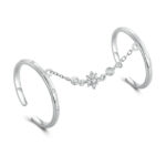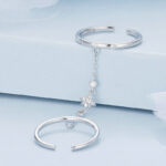 Bague Bouble avec Chaîne en argent 925 plaqué or blanc ajustable avec zircons blancs