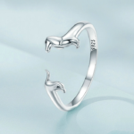 Bague Chien Teckel Argent Sterling 925 plaqué noir – ajustable