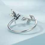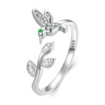 Bague Colibri en argent 925 plaqué or blanc ajustable avec zircons blancs