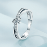 Bague Noeud en argent 925 plaqué or blanc avec zircons blancs