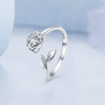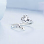 Bague Rose en argent 925 plaqué or blanc ajustable avec zircon blanc