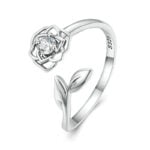 Bague Rose en argent 925 plaqué or blanc ajustable avec zircon blanc