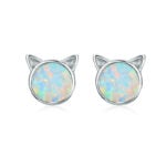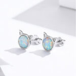 Boucles d’Oreilles Chats en argent 925 plaqué or blanc avec opales