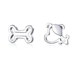 Boucles d’Oreilles Chien avec Os en argent 925 plaqué or blanc