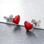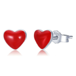 Boucles d’Oreilles Coeurs Rouges en argent 925 plaqué or blanc émaillées rouges