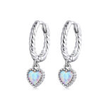 Boucles d’Oreilles Créoles avec Coeurs en argent 925 plaqué or blanc avec opales