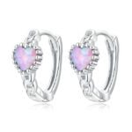 Boucles d’Oreilles Créoles Coeurs en argent 925 plaqué or blanc avec opales