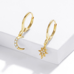 Boucles d’Oreilles Créoles Pendentif Lune et Étoile en argent 925 plaqué or jaune avec zircons blancs