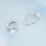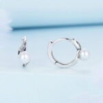 Boucles d’Oreilles Créoles Perles en argent 925 plaqué or blanc avec zircons blancs
