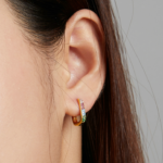 Boucles d’Oreilles Créoles Rectangles, en argent 925 plaqué or blanc avec zircons colorés.