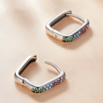 Boucles d’Oreilles Créoles Rectangles en argent 925 plaqué or blanc avec zircons colorés