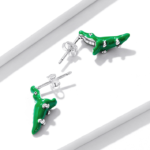 Boucles d’Oreilles Crocodiles en argent 925 plaqué or blanc émaillé à la main