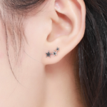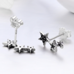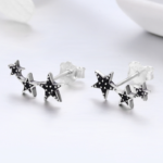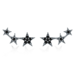 Boucles d’Oreilles Étoiles, en argent 925 plaqué or blanc avec zircons noirs.