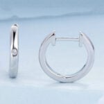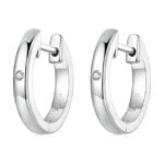 Boucles d’Oreilles Petit Créoles Lisses, en argent 925 plaqué or blanc avec zircons blancs.