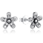 Boucles d’Oreilles Petites Fleurs en argent 925 plaqué or blanc avec zircons blancs