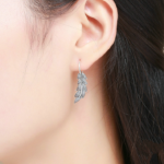Boucles d’Oreilles Plumes en argent 925 plaqué or blanc avec zircons blancs