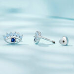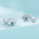 Boucles d’Oreilles Yeux Protecteurs, en argent 925 plaqué or blanc avec zircons bleus.