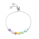 Bracelet Coeurs Colorés en argent 925 plaqué or blanc ajustable avec coeurs émaillés multicolores