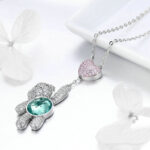 Collier Ourson en argent 925 plaqué or blanc avec zircons colorés