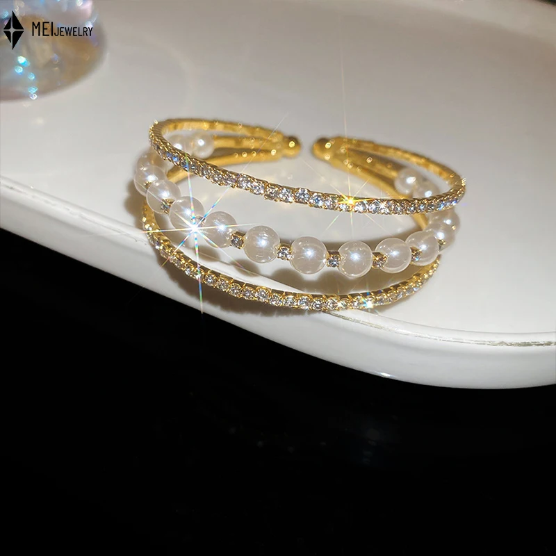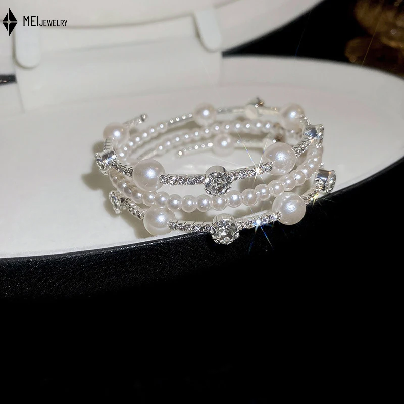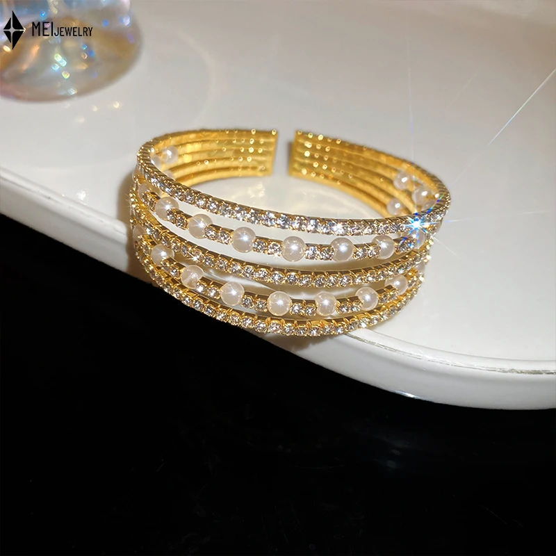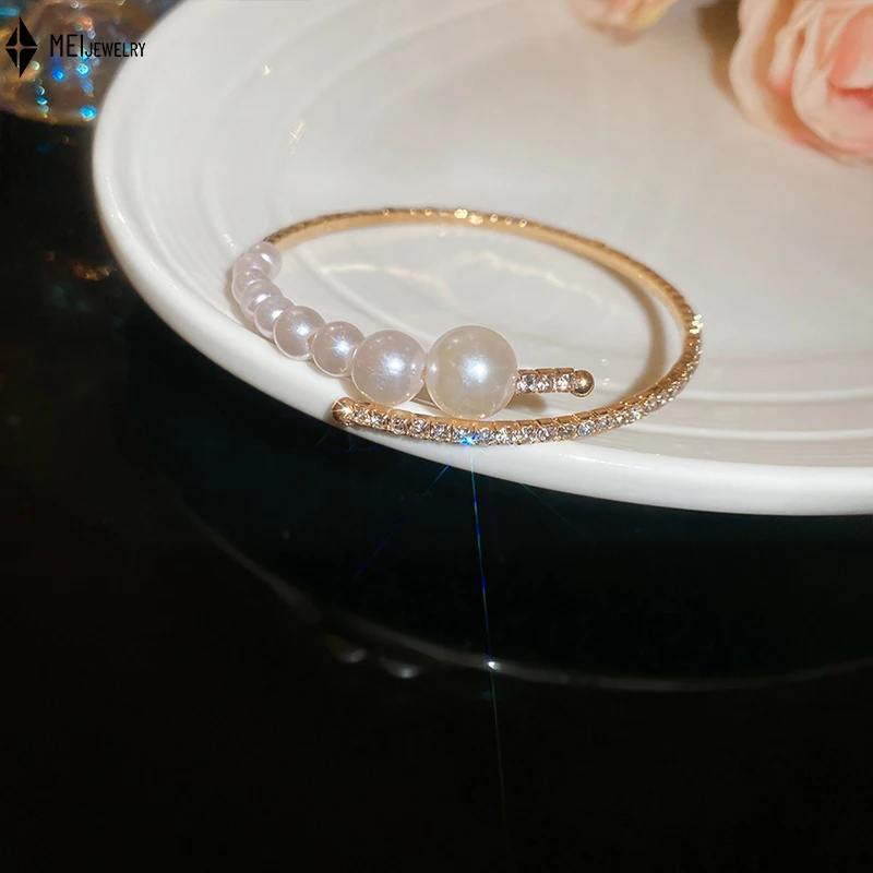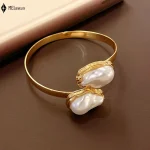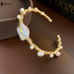 Fashion Light Luxury Elegant Wrapped Baroque Pearl Opening Bracelet for Womern
